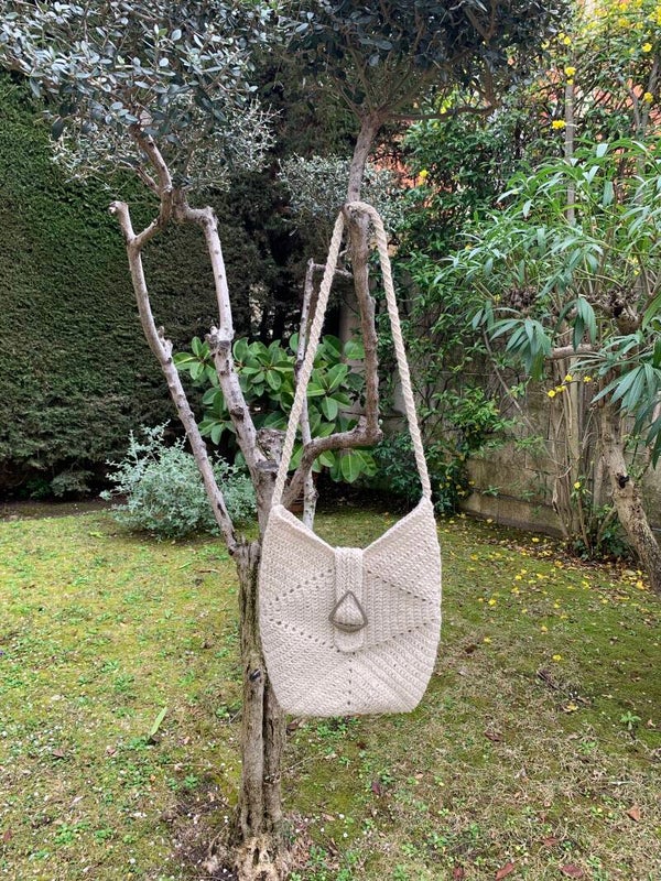 Sac cabas en jute blanc 38x33 cm. L'anse 55 cm.